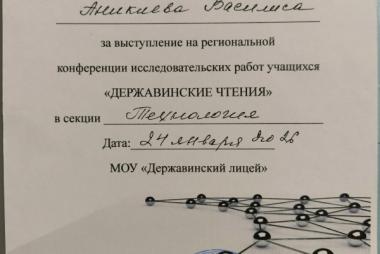 С 22 по 24 января прошла XXX Региональная конференция проектных и исследовательских работ учащихся МОУ «Державинский лицей» «Державинские чтения».